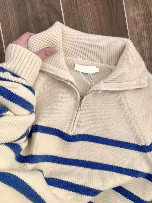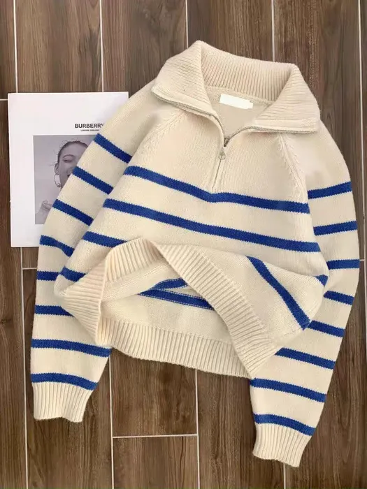 Белый полосатый флисовый свитер с застежкой-молнией на половину длины, женский свитер поло с лацканами, осенне-зимний трикотажный внутренний слой рубашки, зимний топ.