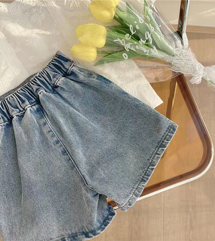Детская одежда, шорты для девочек, новинка года, летняя джинсовая одежда в корейском стиле, тонкая летняя одежда из двух предметов, джинсовые брюки-кюлоты для маленьких девочек