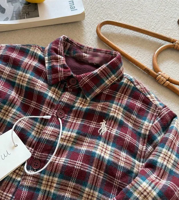 Детская рубашка 2024 года, зимняя вышивка, модный бренд, бархатная рубашка для мальчиков, красивая клетчатая рубашка для девочек.