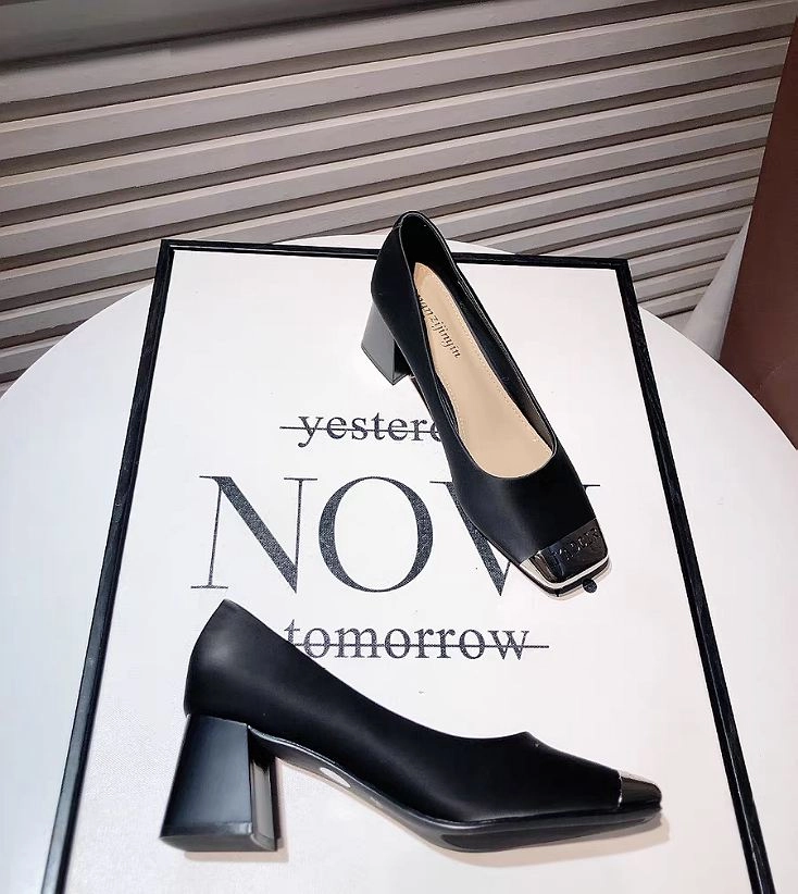 Европейские новые нишевые модные туфли на среднем каблуке с квадратным носком и неглубоким вырезом для поездок на работу, женские универсальные туфли из мягкой кожи, универсальные туфли на толстом каблуке.