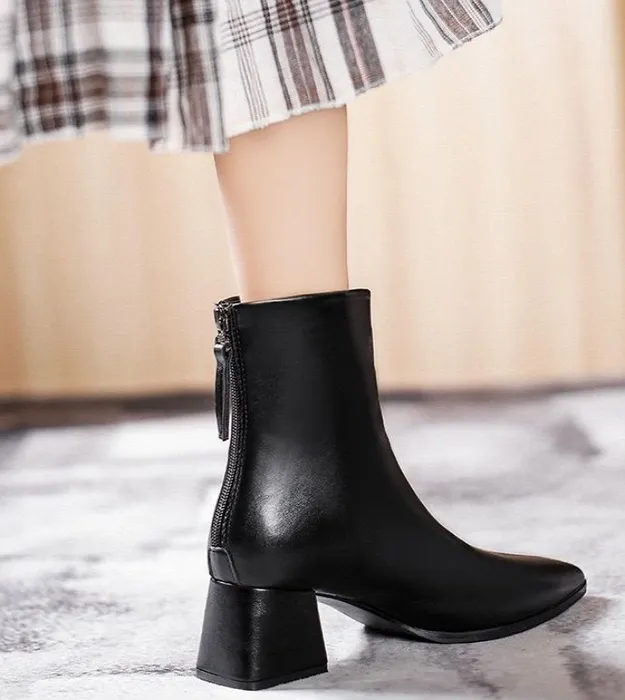 Женские модные ботинки с острым носком и массивным каблуком, верхняя одежда на осень и зиму, элегантные и роскошные короткие ботинки, мягкие кожаные ботинки Martin, с высоким качеством.