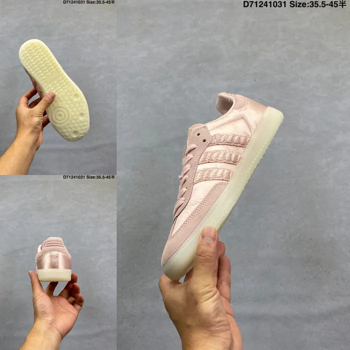 Мужские и женские кроссовки Adidas в половинных размерах с верхом из замши и шёлка, стеклянной стелькой и износостойкой резиновой подошвой RB! Верните себе самый оригинальный и неподвластный времени классический стиль. Универсальные кроссовки Adidas Originals Samba OG серии Samba в футбольном стиле с низким верхом "Silk Cherry Blossom Pink H05158".
