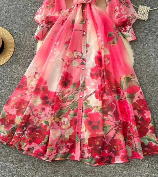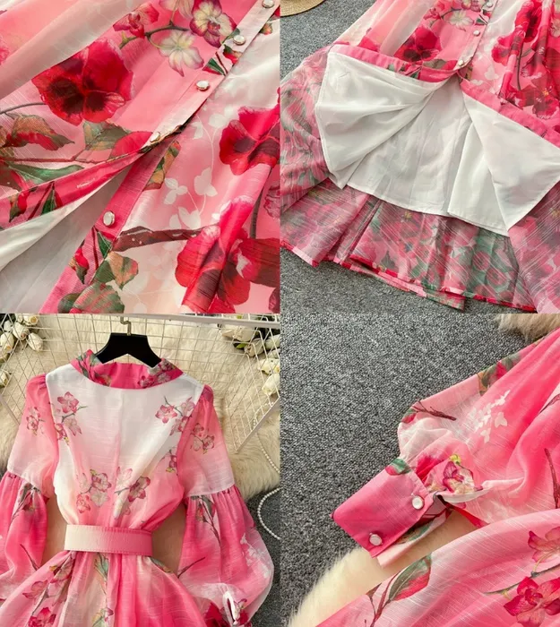 Европейское платье высокого класса для женщин, новый стиль, костюм в дворцовом стиле, воротник-фонарик, рукава-фонарики, длинная юбка с принтом.