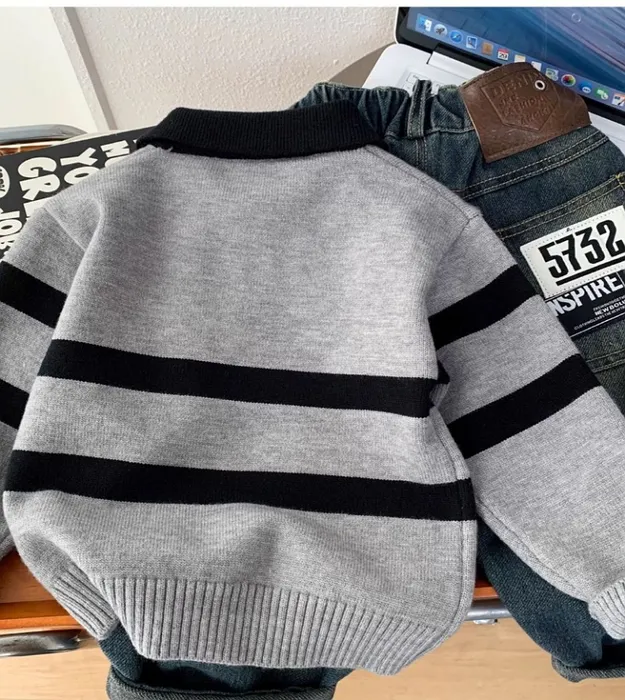Детский свитер 2025 года, осень-зима, новые топы для мальчиков, повседневный свитер ПОЛО для мальчиков.