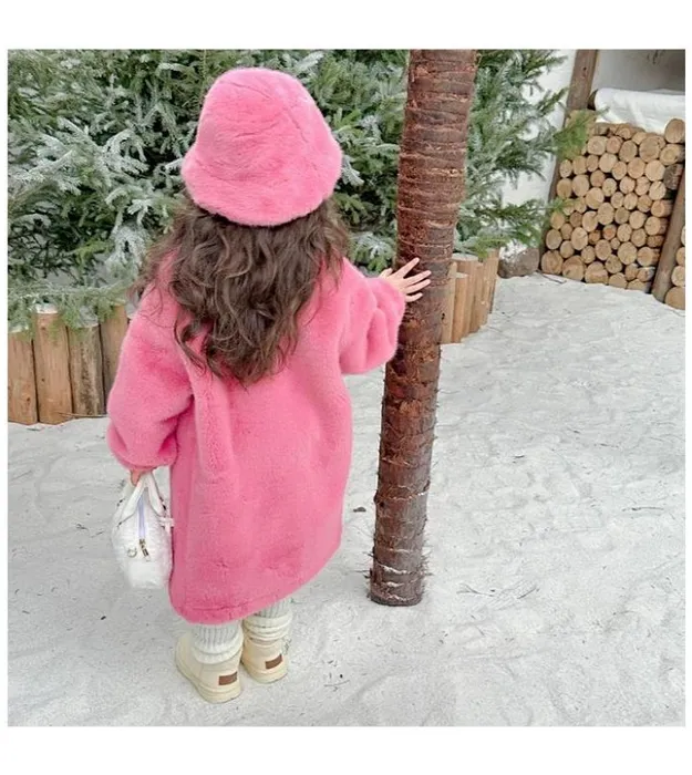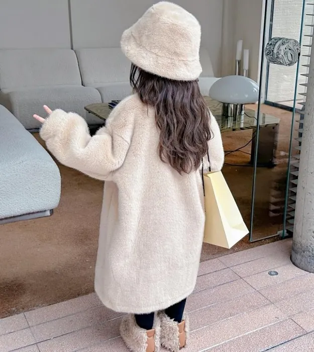 Шуба из искусственной норки для девочки, экологичная, плотная, стильная шуба средней длины.