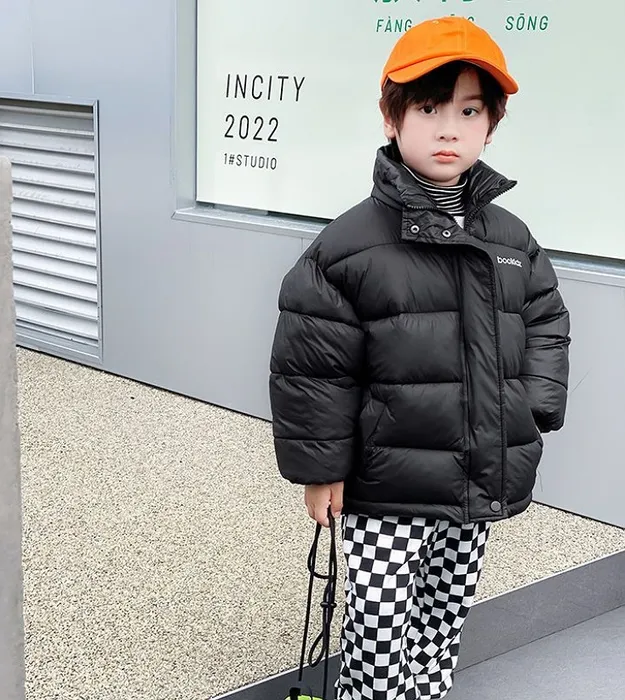 2024 Новая стильная куртка-пуховик в корейском стиле для мальчиков и девочек, теплая куртка с хлопковой подкладкой для детей и подростков.