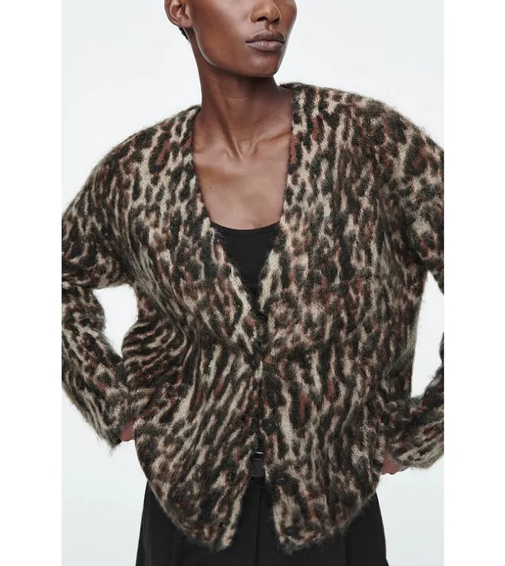 Новинка от COS, женская стандартная версия, вязаный кардиган с V-образным вырезом и леопардовым цветом