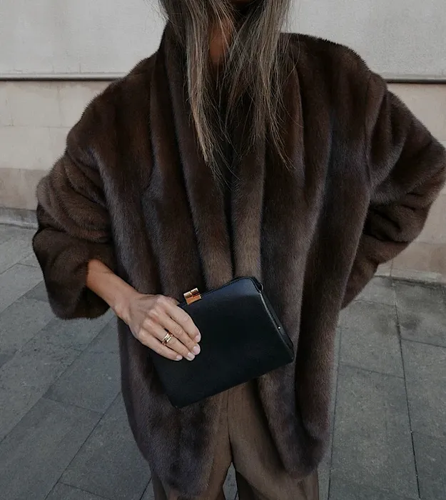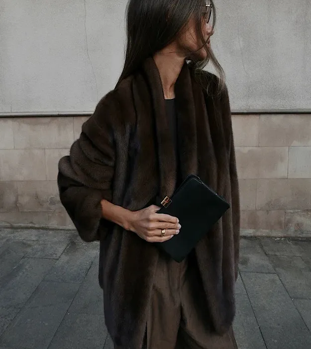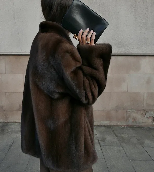 Женская зимняя норковая шуба, кофейно-коричневого цвета, свободного кроя, с V-образным вырезом, из экологически чистого норкового меха.