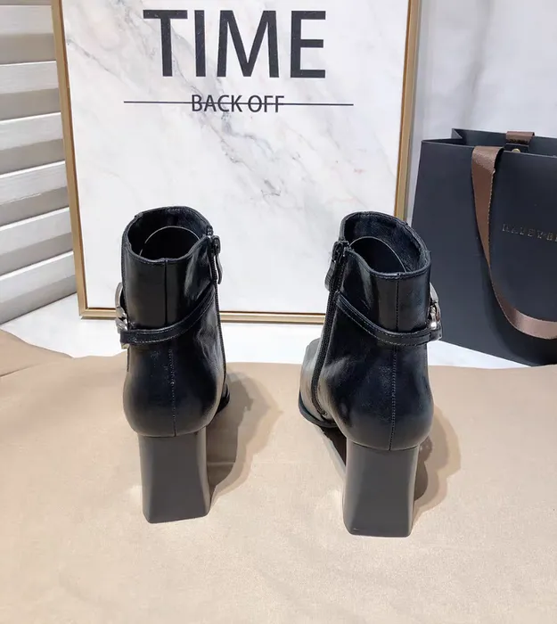 Женские ботильоны на массивном каблуке с французским узором Майяр, новый стиль 2025 года. Коричневые облегающие ботильоны на высоком каблуке с квадратным носком и цепочками.