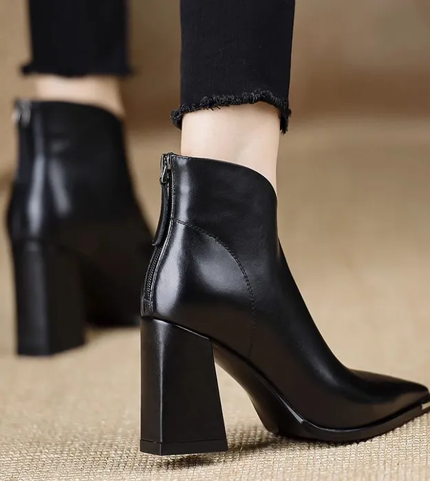 Женские ботильоны 2025 года с острым носком и массивным каблуком, осень-зима, ботинки Martin с флисовой подкладкой, миниатюрные ботильоны во французском стиле, облегающие ботинки.