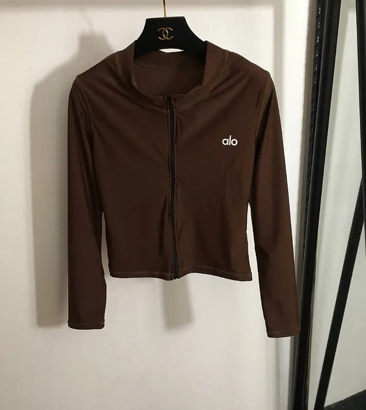 Новый спортивный костюм-тройка Alo, топ на молнии с длинными рукавами + жилет с бретелькой на шее + эластичные утягивающие леггинсы