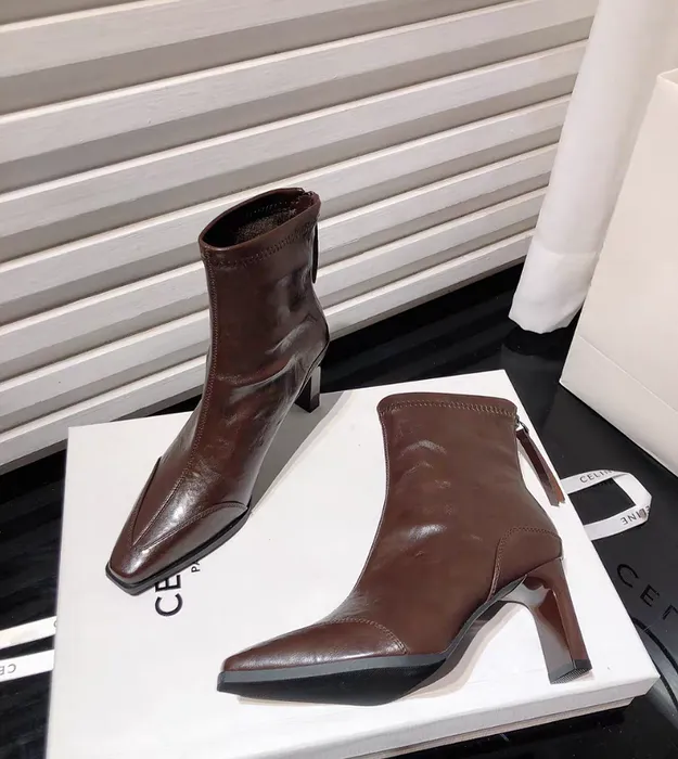 Универсальный, высокие эластичные узкие сапоги на каблуке, женские, корейский стиль, новые коричневые ретро-сапоги с квадратным носком и толстым каблуком, короткие модные сапоги