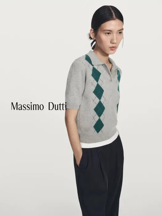 Женский свитер в стиле ретро преппи с ромбовидным узором, из мягкой шерсти, с воротником-поло и короткими рукавами.
