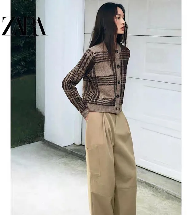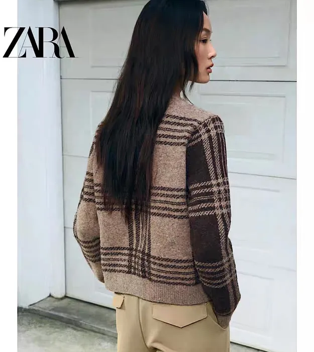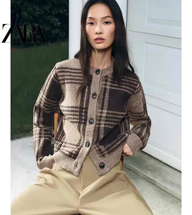 Вязаный кардиган в клетку