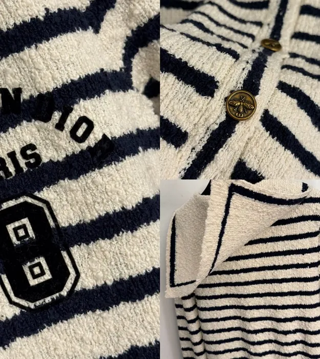 Dio* Новый CD Bee Button Navy Collar Strip Трикотажный кардиган с длинными рукавами, не совсем белый, 36 38 40, [38 ярдов: 39 ширина, бюст 96, длина рукава 62, длина 51