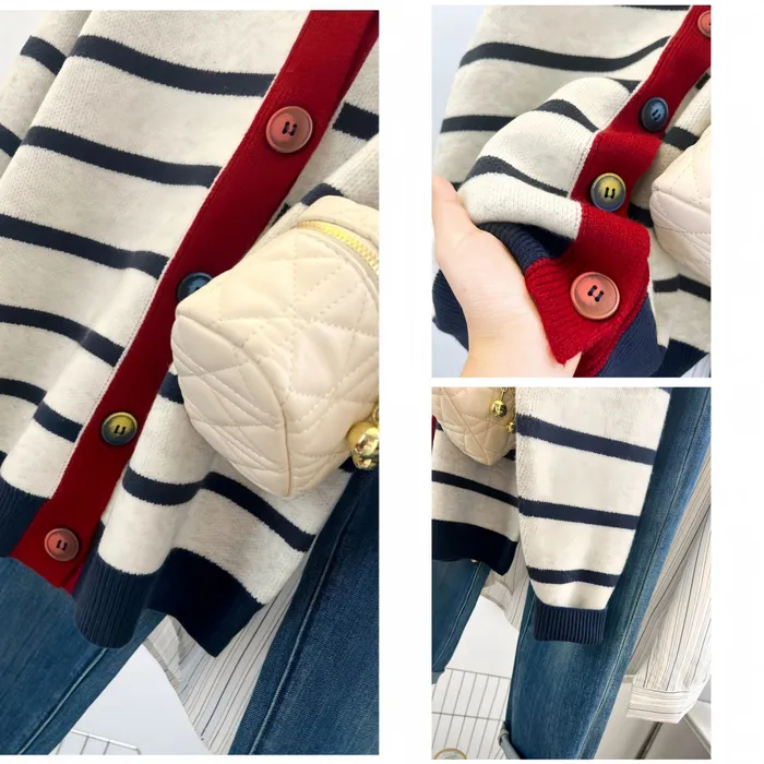 2025 новый ленивый полосатый свитер,осень-зима, свободная верхняя одежда, вязаный свитер в студенческом стиле, начало осени.