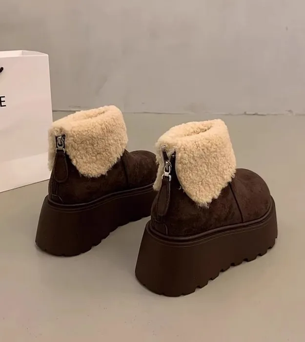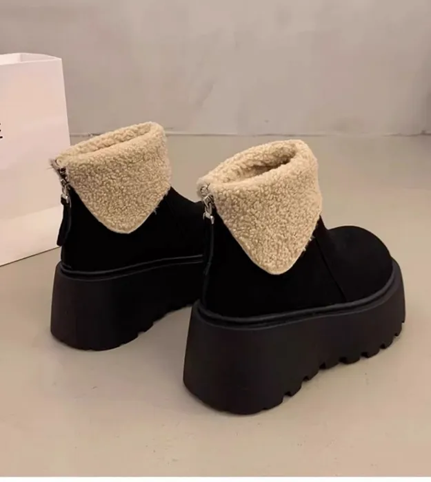 Женские зимние ботинки, на толстой подошве, визуально увеличивающие рост, зимняя модель 2025 года, тёплые, на флисовой подкладке, хлопковые биркенштоки, для миниатюрных женщин, ботинки Martin.