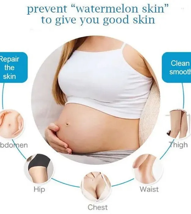 Bedeniň derisini dikeltmek üçin çaga dogurmazdan ozal we soň uzaldylan yzlara we yzlara garşy krem. Uzaldyş yzlaryny, yzlary we sellýulitleri, şeýle hem aşa köpelmek (göwrelilik, duýdansyz horlanmak ýa-da semremek) sebäpli ýüze çykýan beýleki ýakymsyz deri meselelerini ýok edýär, deriniň zeperlenen ýerlerini dikeldýär. Derini güýçlendirýär, epidermisiň çeýeligi üçin jogapkär maddalaryň sintezini ýokarlandyrýar. Deriniň daşky görnüşini gowulandyrýar, garaňky uzaldylan yzlary ýok edýär we olary görünmeýär. Epidermisiň metabolik proseslerini we regeneratiw häsiýetlerini işjeňleşdirýär. Kremde gormonlar ýa-da pigmentler ýok we eşiklerde tegmiller galdyrmaýar. Kompozisiýadaky Allantoin, goşa täsir edip, deriniň täzelenmegine kömek edýär - ölen öýjükleri aýyrmaga we täzeleriniň ösmegine itergi berýän ýumşadýar. Gliserin derä çeýeligi we berkligi berýär. GÖRNÜŞ: Deriniň uzalmagy howpy bolan ýerlerde ýa-da deriniň zeperlenen ýerlerine doly siňýänçä arassalaň. Göwrelilik döwründe ulanmak ygtybarly.