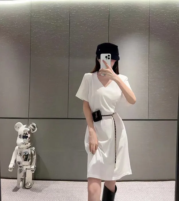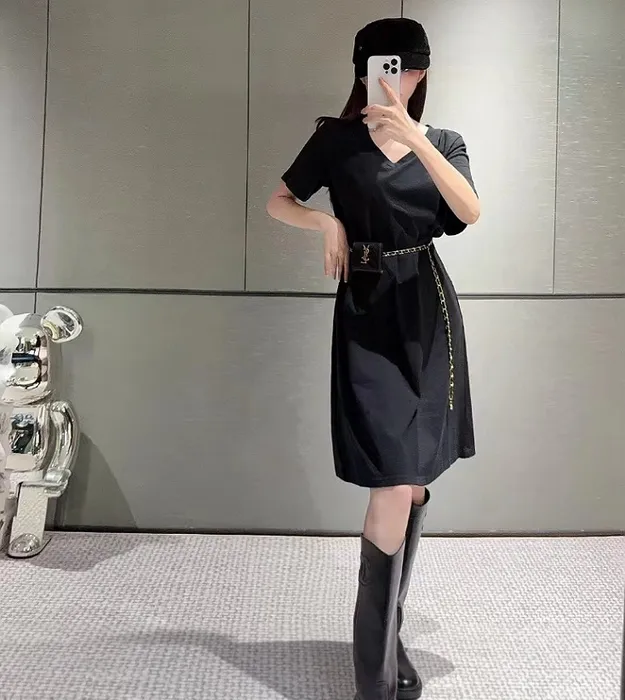 YSL * täze logo keşdeli V-boýun gysga ýeňli köýnek, zenanlaryň egin eşikleri, enjam zynjyry bilen sumkasy